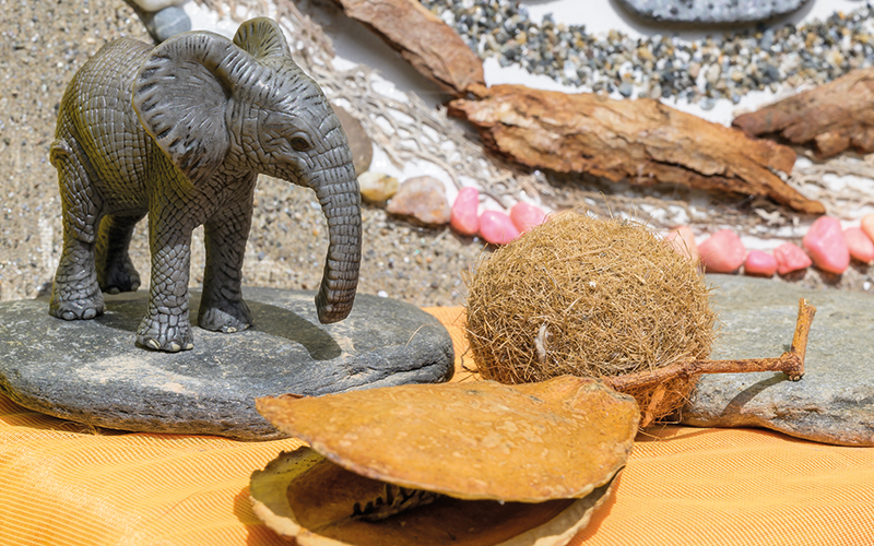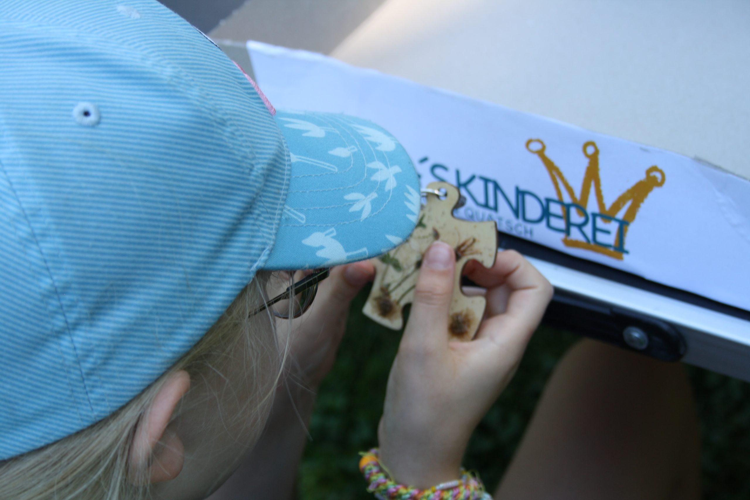 Erlebe mit Dana’s Klimbim Koffer eine spannende Entdeckungsreise mit Naturmaterialien direkt auf Deiner Geburtsagsfeier zu Hause. Das Materialbüffet wird kreisförmig angelegt, um eine gemütliche und inspirierende Atmosphäre zu schaffen. Jeder von Euch erhält einen Platz an der mitgebrachten königlichen Tischecke, mit praktischen Hockern, um bequem arbeiten zu können.